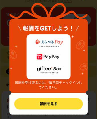 生年月日やニックネームなどの必要情報を入力して登録を完了すると、「報酬をGETしよう!」という画面が表示されます。
