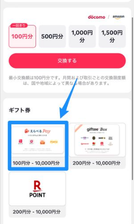 交換できるギフトの一覧が表示されるので、【えらべるPay】を選択します。