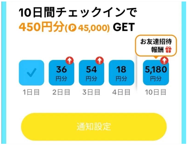 10日間チェックインを続けると、5000円分のポイントがゲットできます。